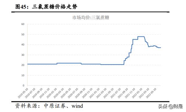 目前常见的甜味剂有安赛蜜、阿斯巴甜、三氯蔗糖以及麦芽糖醇、山梨糖醇、木糖醇等糖 醇。凭借稳定性、安全性等方面优势,三氯蔗糖逐渐取代阿巴斯甜、安赛蜜等甜味剂,其市场 份额持续提升,需求保持快速增长态势。2021 年以来,随着大量无糖饮料推向市场,人工甜味 剂的需求持续提升,叠加原材料价格上涨等因素,三氯蔗糖等甜味剂价格大幅上涨。