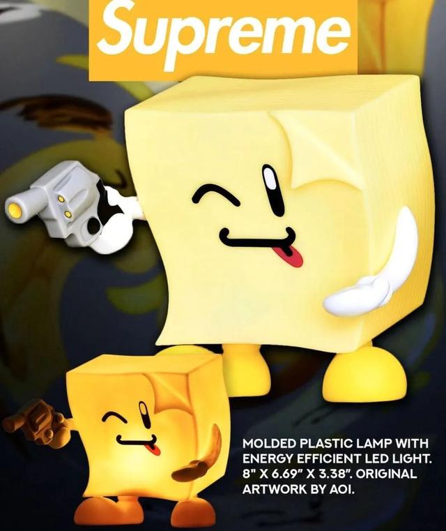 Supreme的这款小台灯搭配了LED光源,可以说不光是有着俏皮可爱的迷人外表,还有着非常强大的实用功能性,这样一个小夜灯不管是放在床头还是作为摆件,都非常合适,尺寸换算到厘米为27cm *22cm *11cm,几乎就一个手掌大小