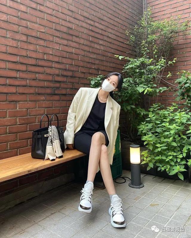 车贞媛这两套我很喜欢,短下装 + 棉袜 + 小白鞋,把灰色穿得活力满满。