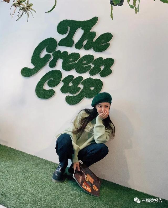 除了灰色,车贞媛喜欢第二多的颜色应该是浅豆绿。
