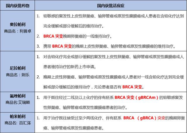 2018年8月,我国也批准了奥拉帕利上市,用于卵巢癌的治疗,此后,国内陆续批准了尼拉帕利、氟唑帕利、帕米帕利等PARP抑制剂用于卵巢癌治疗。并且还纳入了国家医保,让更多卵巢癌患者获得治疗机会。