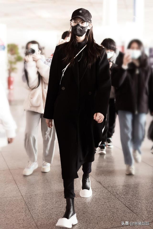 对于厚底靴的搭配小编个人不太建议选择露腿的搭配,裤装搭配厚底靴显高的效果会更好。